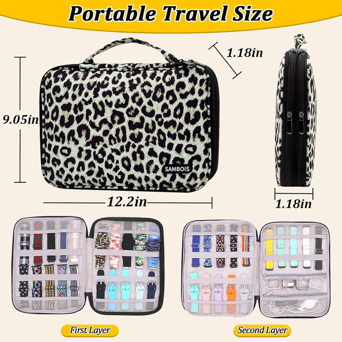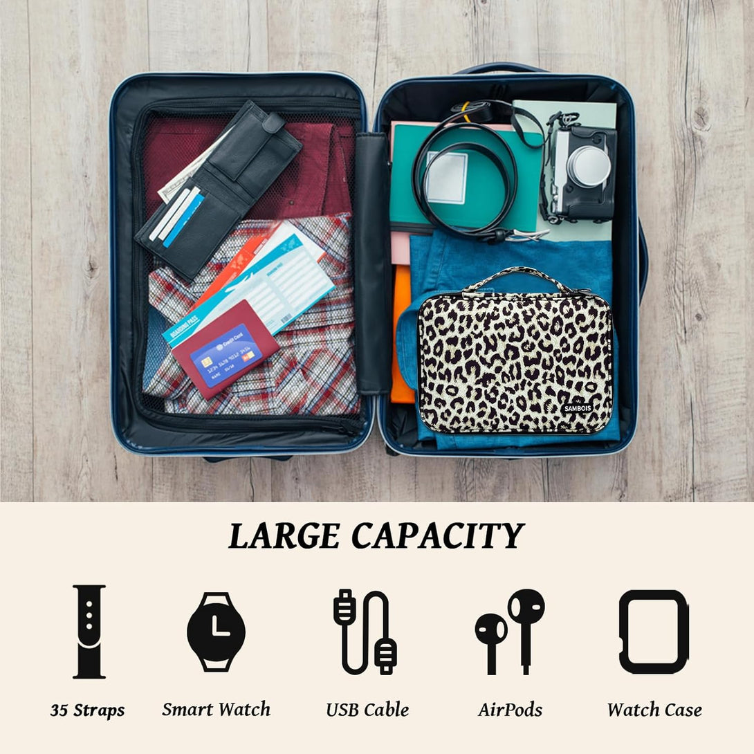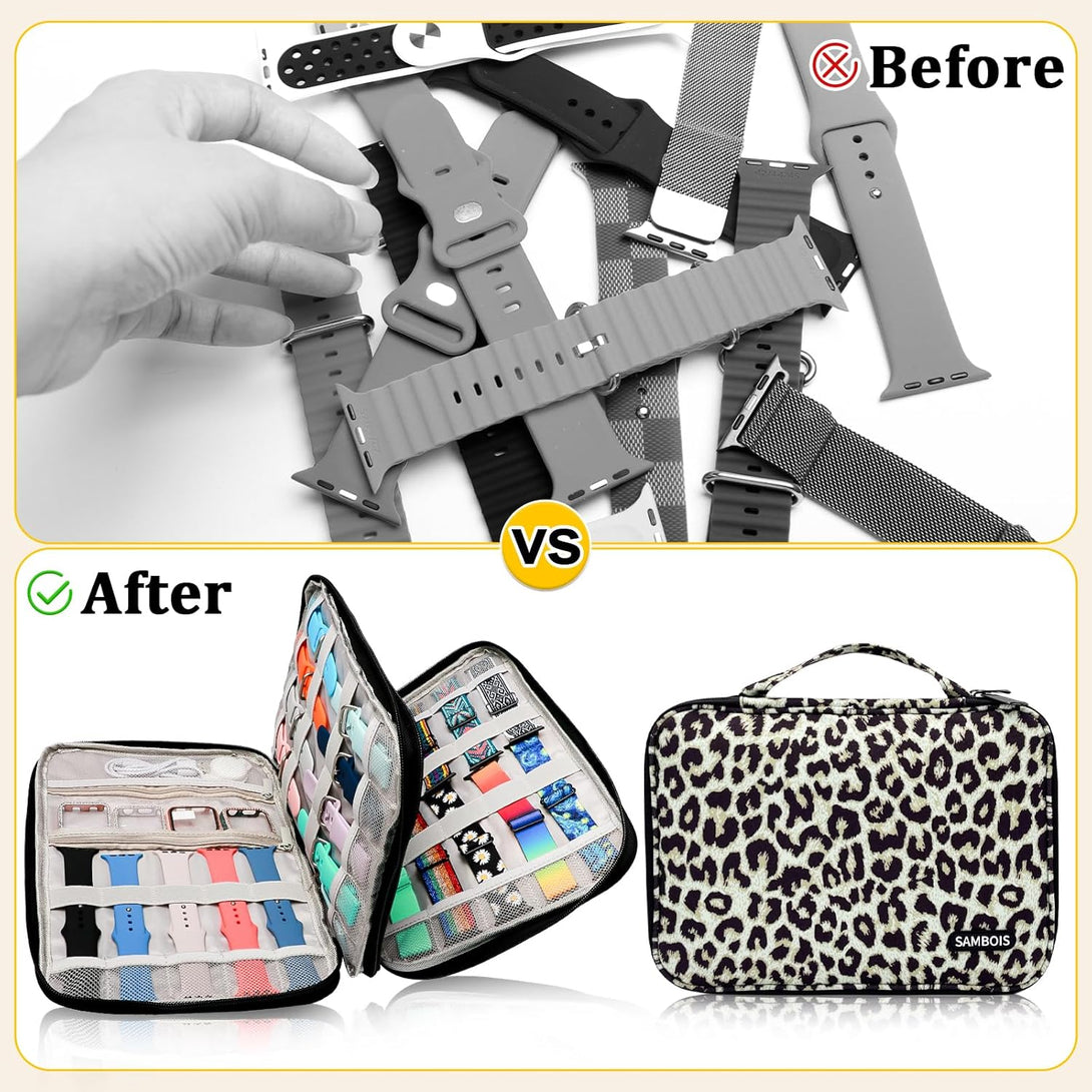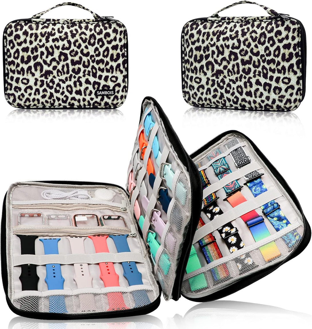 Turn organization into fashion with the elegant leopard print design! This watch band storage bag makes a thoughtful gift for Apple Watch lovers, tech enthusiasts, or anyone with a growing strap collection.