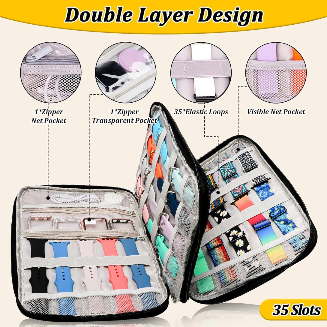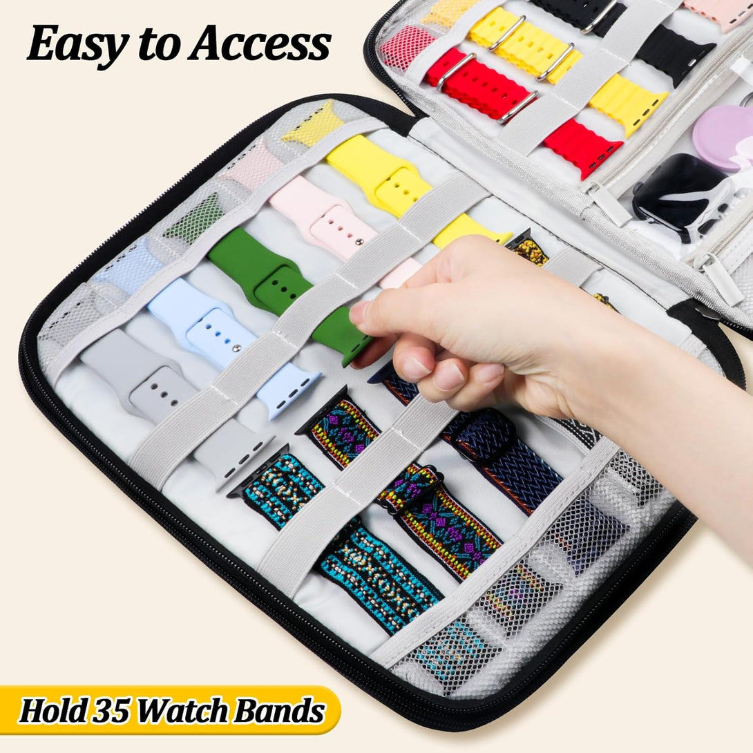 Crafted from premium waterproof Oxford fabric, this case protects your valuable watch bands and accessories from moisture, dust, and damage. The elastic bands ensure your straps stay securely in place—no more tangled messes!