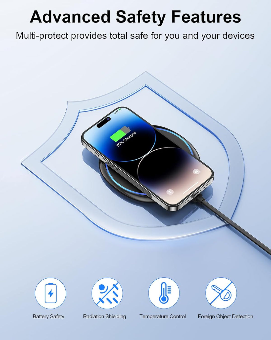 - Wide Compatibility: 10W fast wireless charging pad compatible with Samsung Galaxy S24/S24+/S24 Ultra, S23/S23+/S23 Ultra, S22/S22+/S22 Ultra, S21/S21+/S21 Ultra, S20/S20+/S20 Ultra, S10/S10 Plus/S10E, S9/S9+, S8/S8+, S7/S7 Edge, Note 20/20 Ultra/10/9/8. 7.5W charging base compatible with iPhone 16/16 Plus/16 Pro/16 Pro Max/iPhone 15/15 Plus/15 Pro/15 Pro Max/14/14 Plus/14 Pro/14 Pro Max/SE 2022/13/13 mini/13 Pro/13 Pro Max/12/12 Pro/12 Pro Max/12 Mini/SE 2020/11/XS/XS Max/XR/X/8/8 Plus. 5W for New Airpods/Galaxy Buds and Qi-enabled Phones.