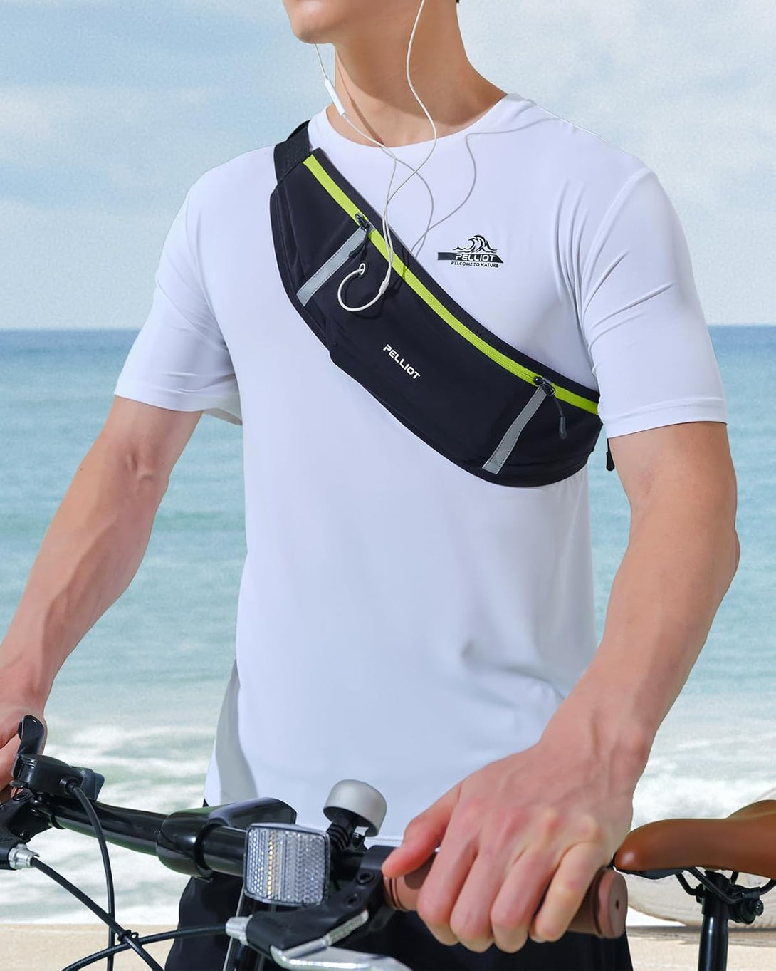 Built with premium YKK zippers and a sturdy buckle for long-lasting use. A reflective safety strip keeps you visible in low light, while a built-in earphone hole lets you enjoy music or podcasts on the move.